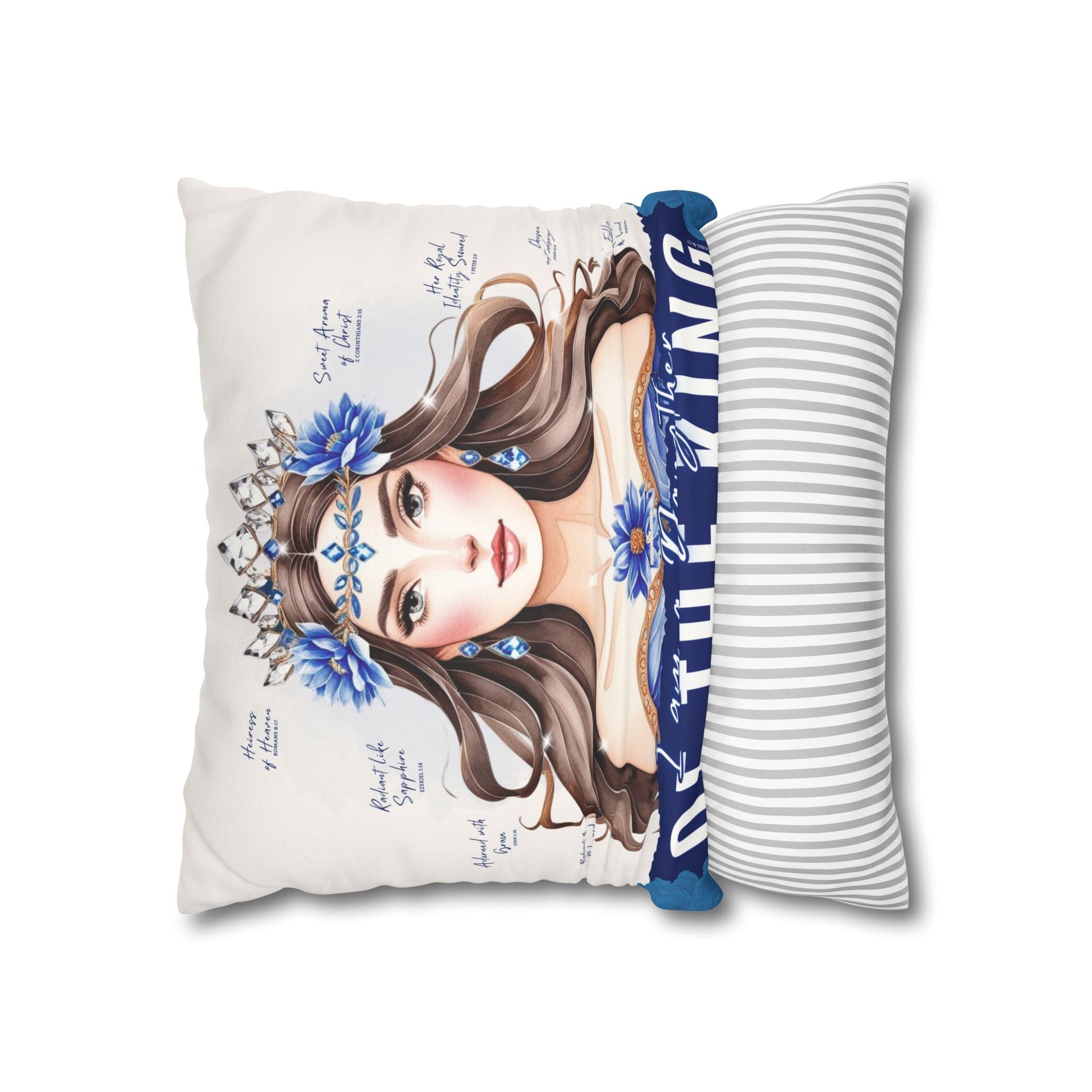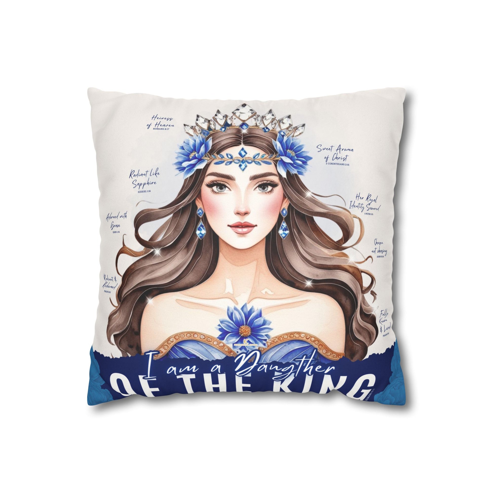 Daughter of the King Faux Suede Pillowcase | Floral Crown Decorative Throw Pillow I Blue