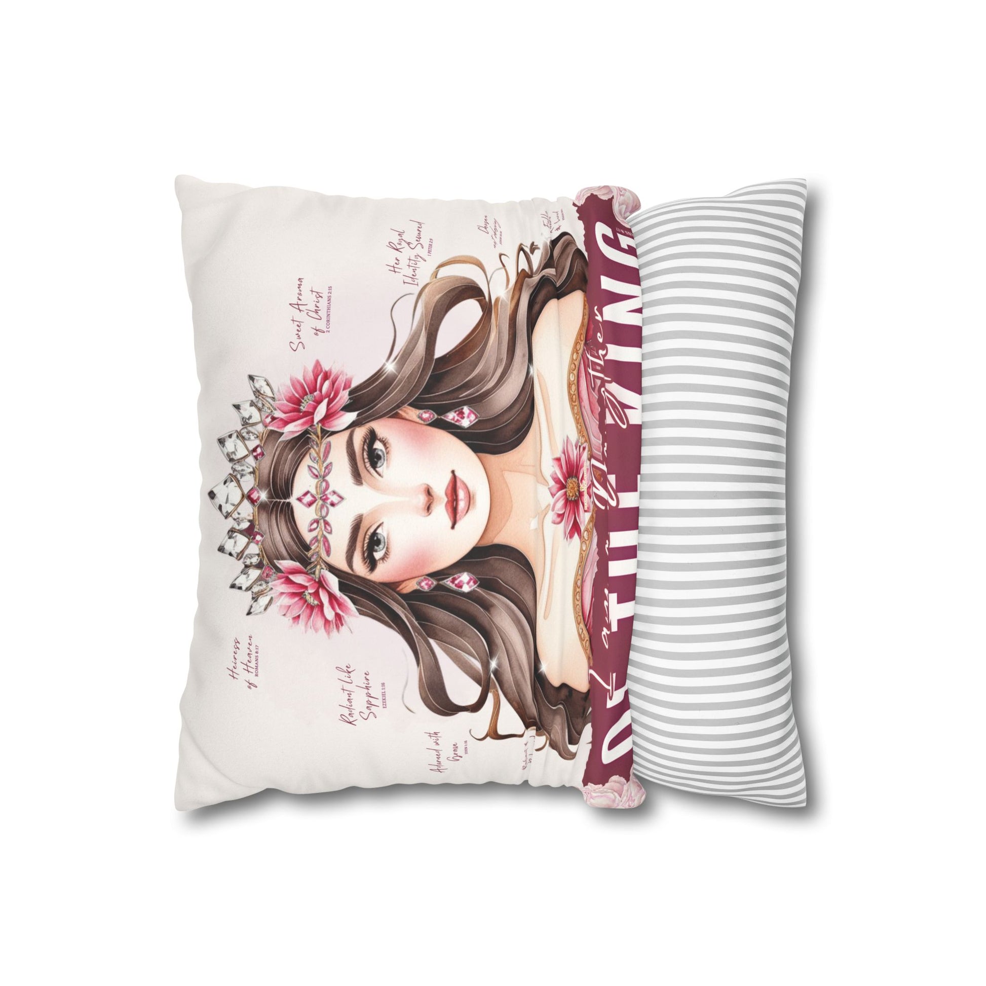 Soft to the touch and gentle on the eyes, this faux suede square pillowcase brings a calm, feminine energy to any room. The artwork—an elegant, crowned woman framed by soft florals—reads like a quiet declaration of strength and grace. The double-sided print keeps the design visible from every angle, while the neutral tones and beige zipper blend seamlessly into shabby-chic and modern-vintage spaces. Slip it over a slightly larger insert for a plush, sculpted finish and place it on a bed, loveseat, or reading nook to add a layered, personal accent that feels collected and intentional.