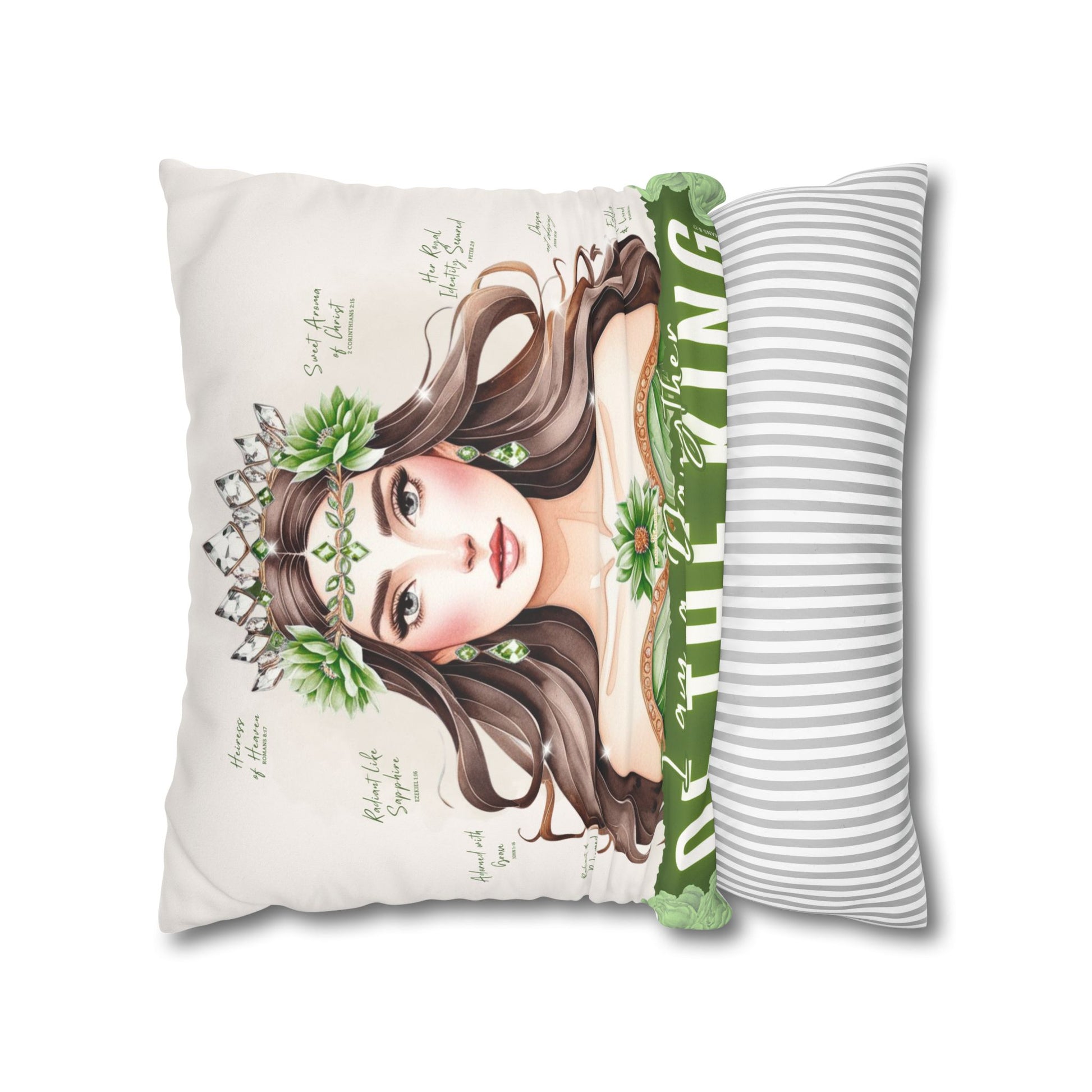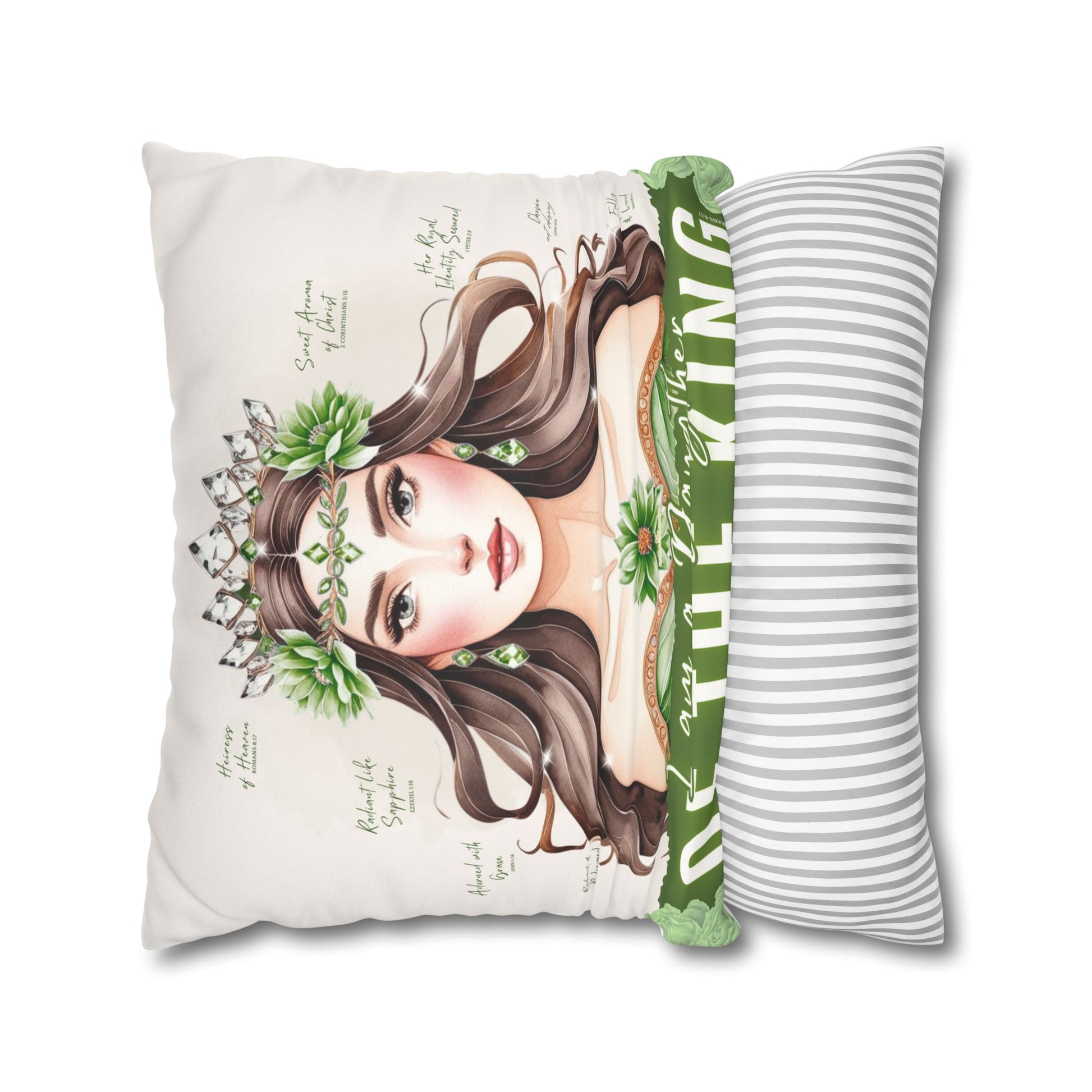 Daughter of the King Faux Suede Pillowcase | Floral Crown Decorative Throw Pillow I Olive Green