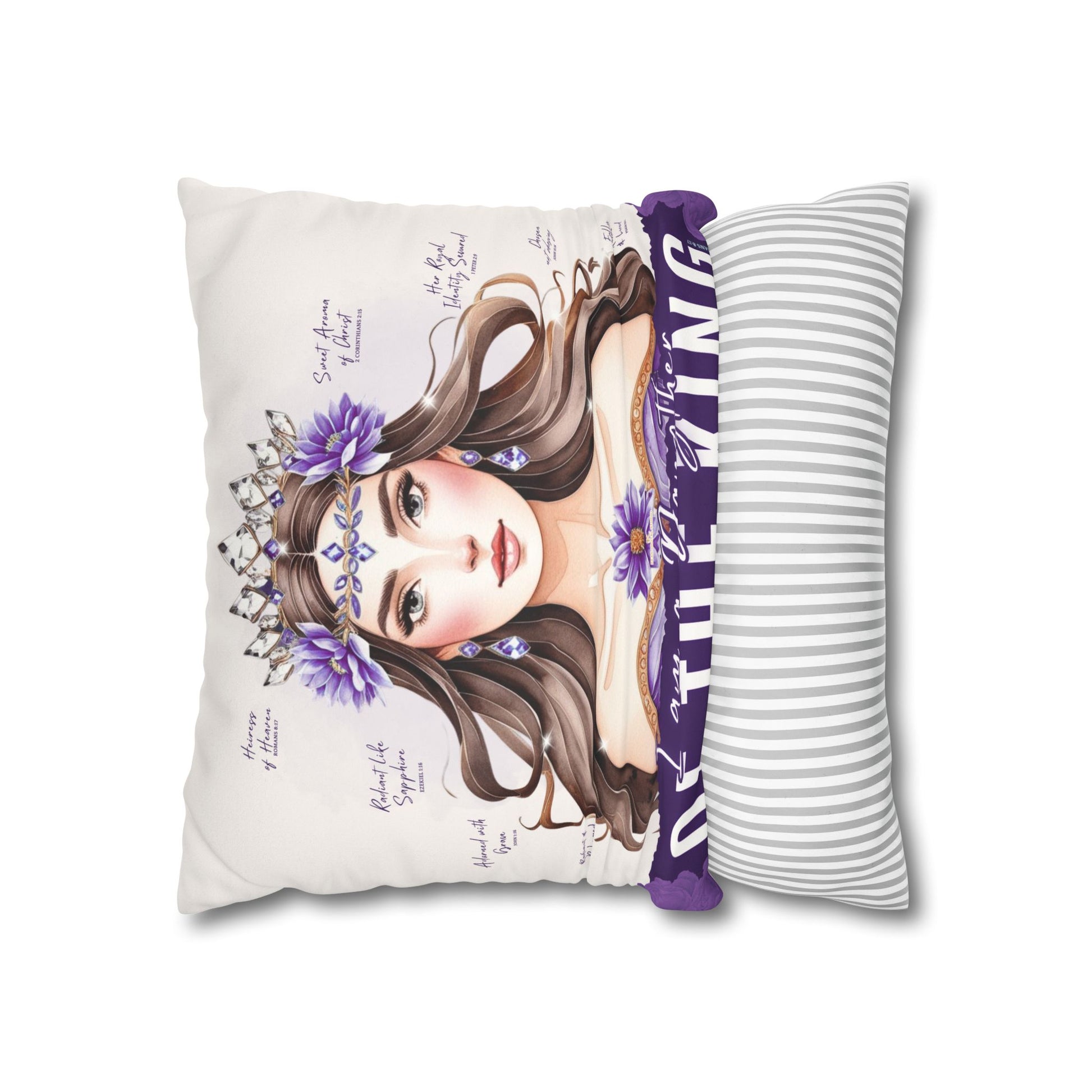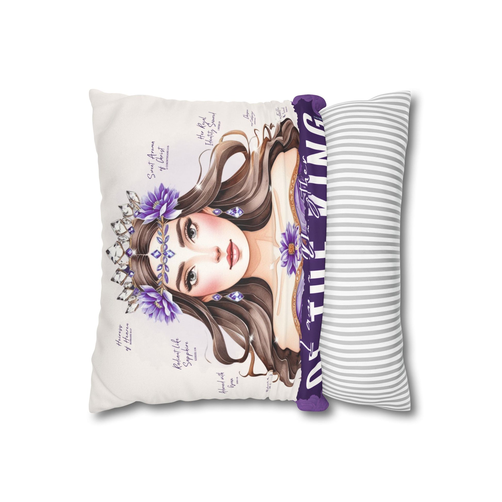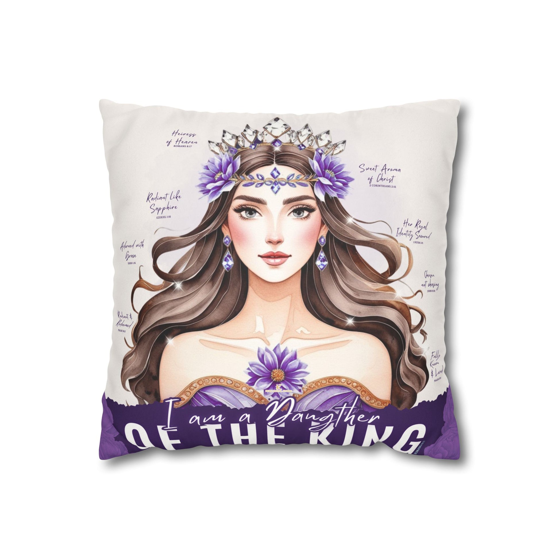 Daughter of the King Faux Suede Pillowcase | Floral Crown Decorative Throw Pillow I Purple Violet