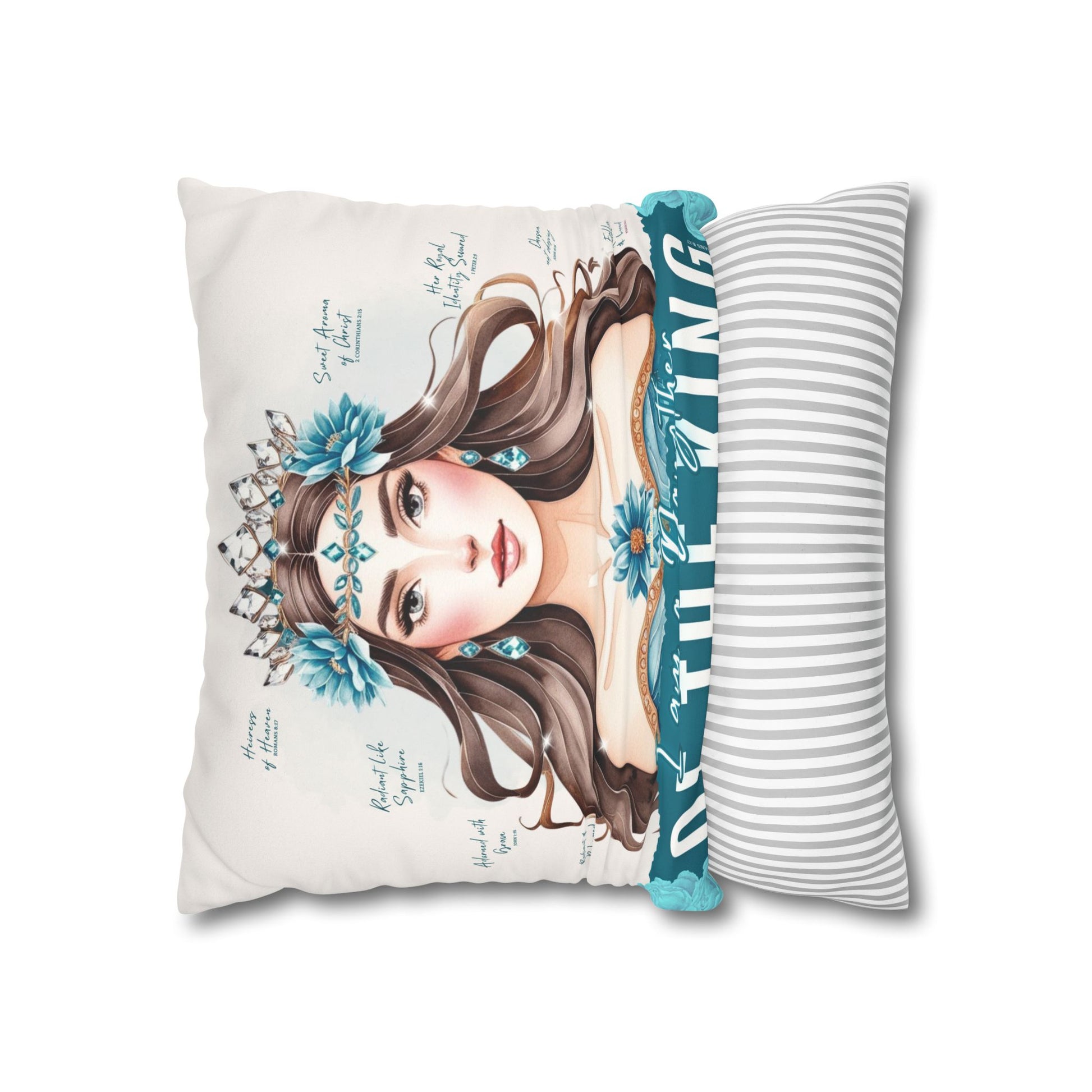 Daughter of the King Faux Suede Pillowcase | Floral Crown Decorative Throw Pillow I Turquoise