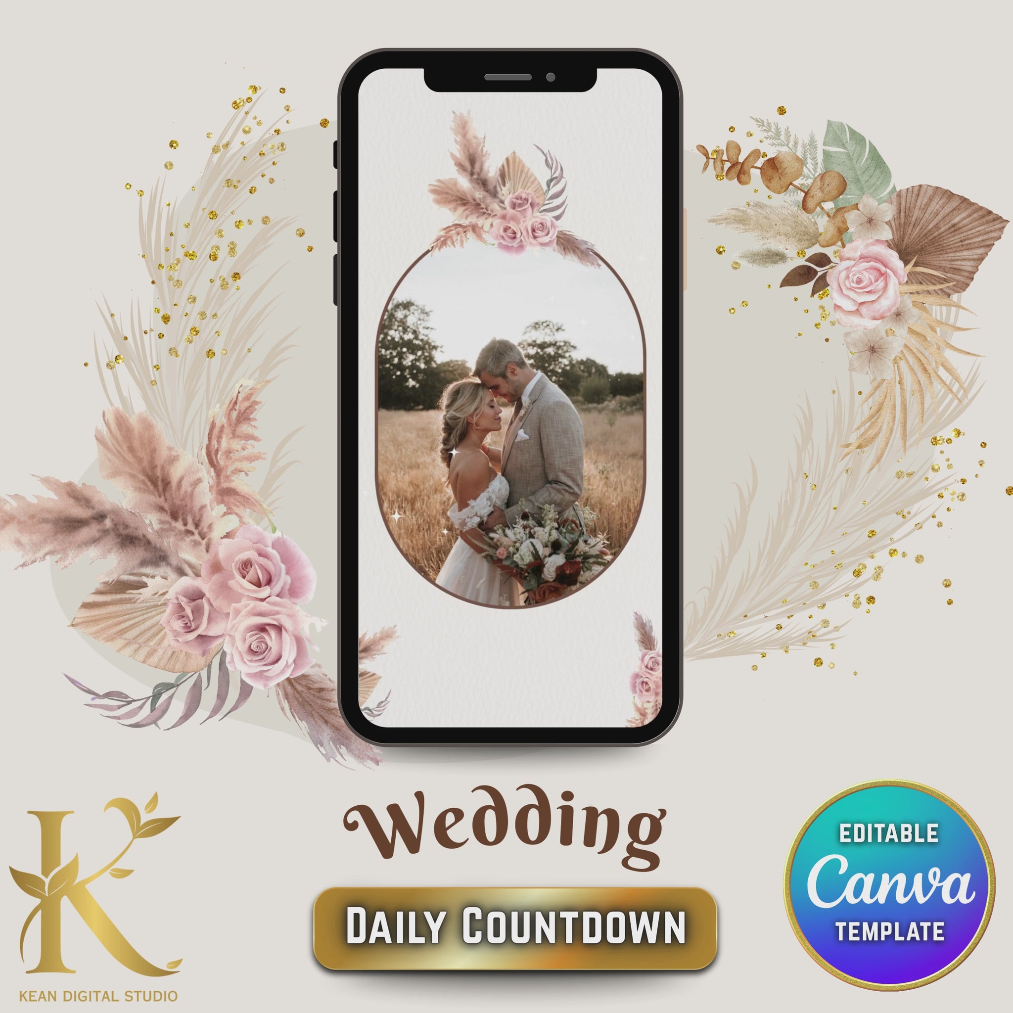 Wedding Daily Countdown Video Template, Fully Editable in Canva, Boho Theme