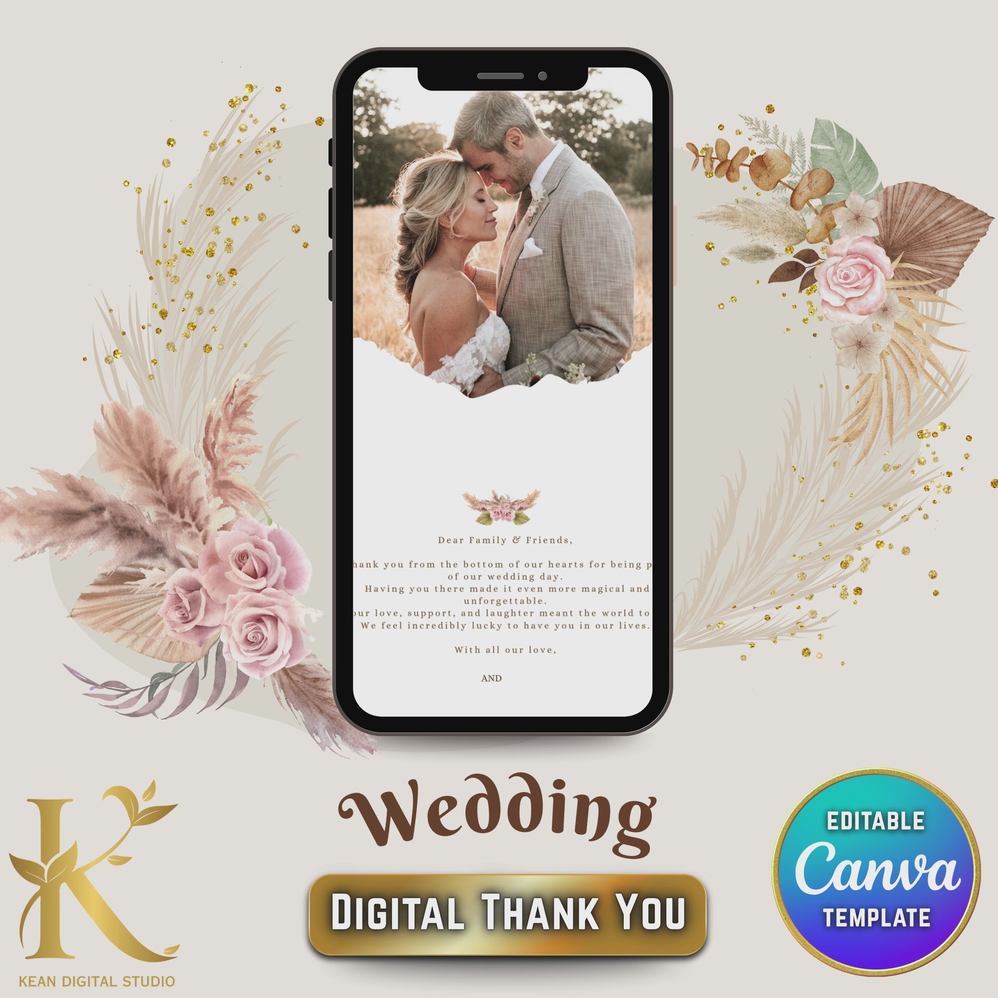 Wedding Digital Thank You Video Template, Fully Editable in Canva, Boho Theme